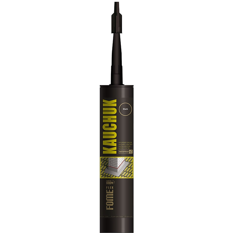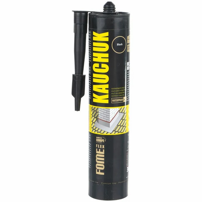 Каучуковый герметик FOME FLEX Kauchuk (черный; 300 мл) 01-4-2-011 используют для заполнения деформационных швов и зазоров между кровельными материалами, вокруг дымоходов, люков, вентиляционных проходов.