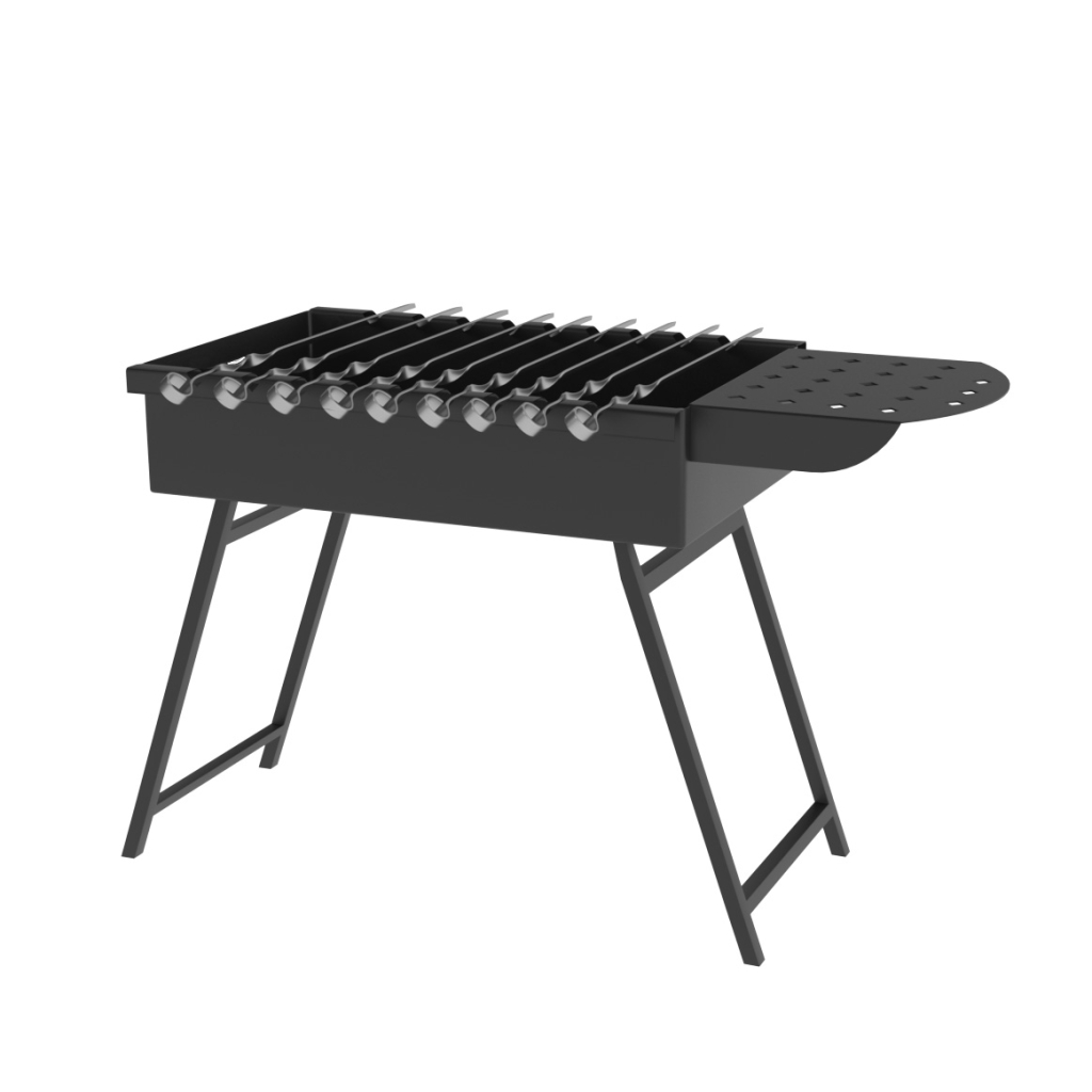 Мангал "Пикник" предназначен для приготовления пищи под открытым небом. Рабочая часть мангала оборудована удобной боковой полкой для посуды и соусов, а также съемными ножками, что делает его удобным для перевозки и хранения.