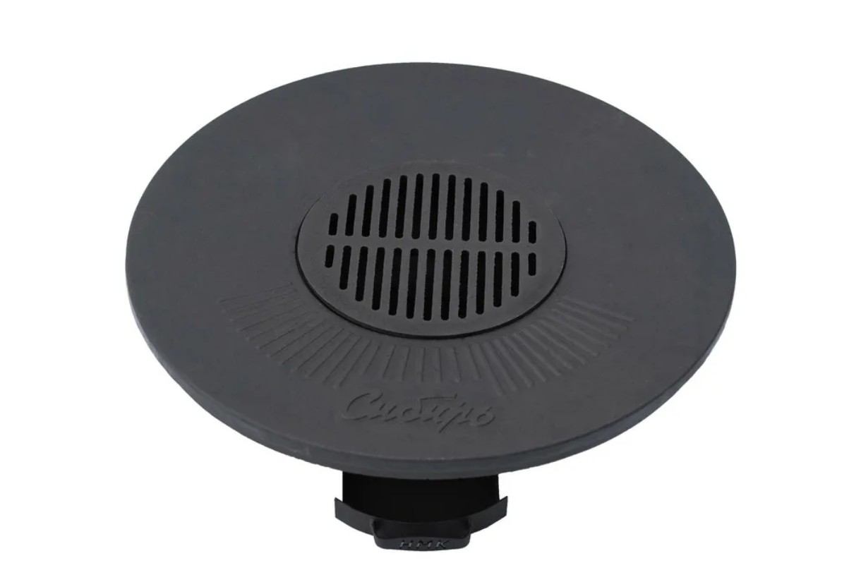 Гриль-очаг очень прост в использовании: дрова закладываются в центр очага, на решетке гриль можно готовить сразу после закладки дров, а на жарочной поверхности через 20-25 минут. Жарочная поверхность имеет диаметр 790 мм и сконструирована таким образом, чтобы излишки масла сами стекали в огонь и не попадали наружу.