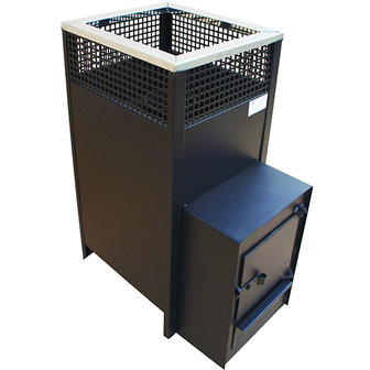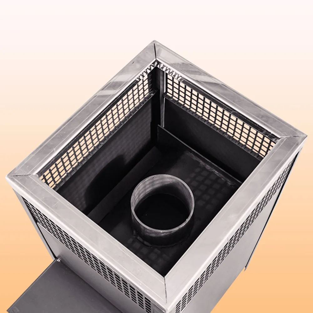 Между топкой и кожухом имеется зазор, в котором образуется конвекционный поток, способствующий циркуляции воздуха в парной, а также дополнительному теплу для нагрева камней.