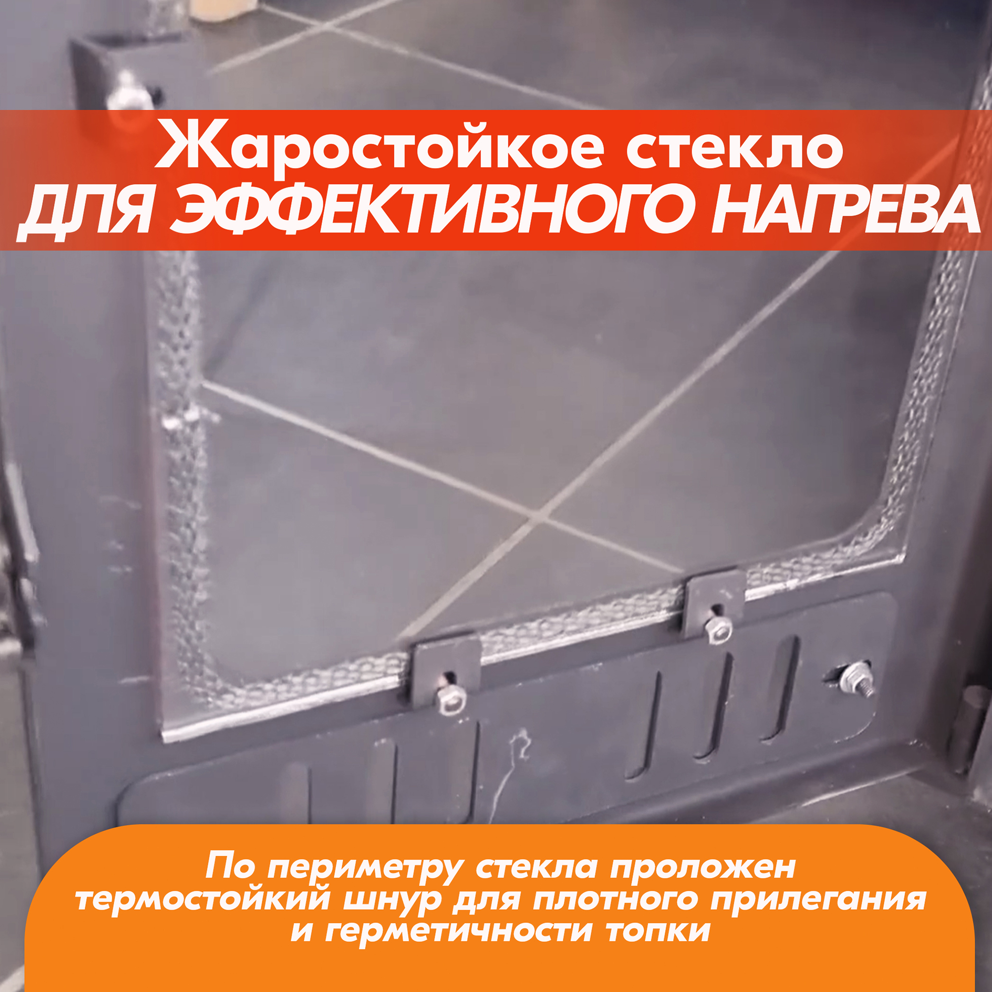 По периметру стекла дровяной печи проложен термостойкий шнур, благодаря чему обеспечивается плотное прилегание стекла и герметичность топки.