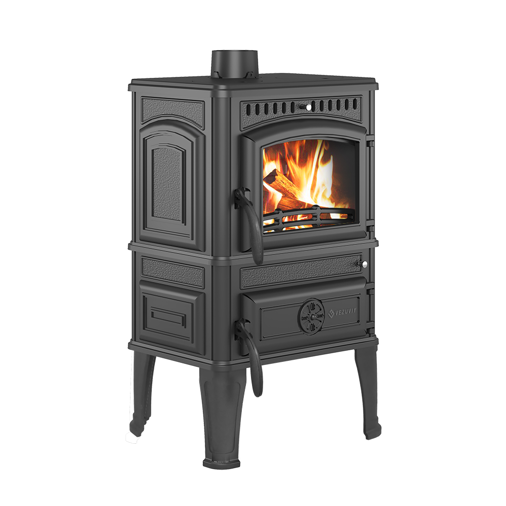 чугунная печь-камин с двойными стенками;