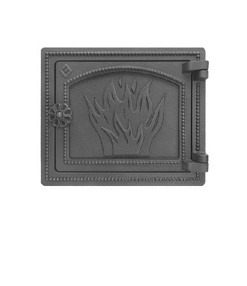 Чугунная дверца топки надежно закрывает отверстие для закладки дров;