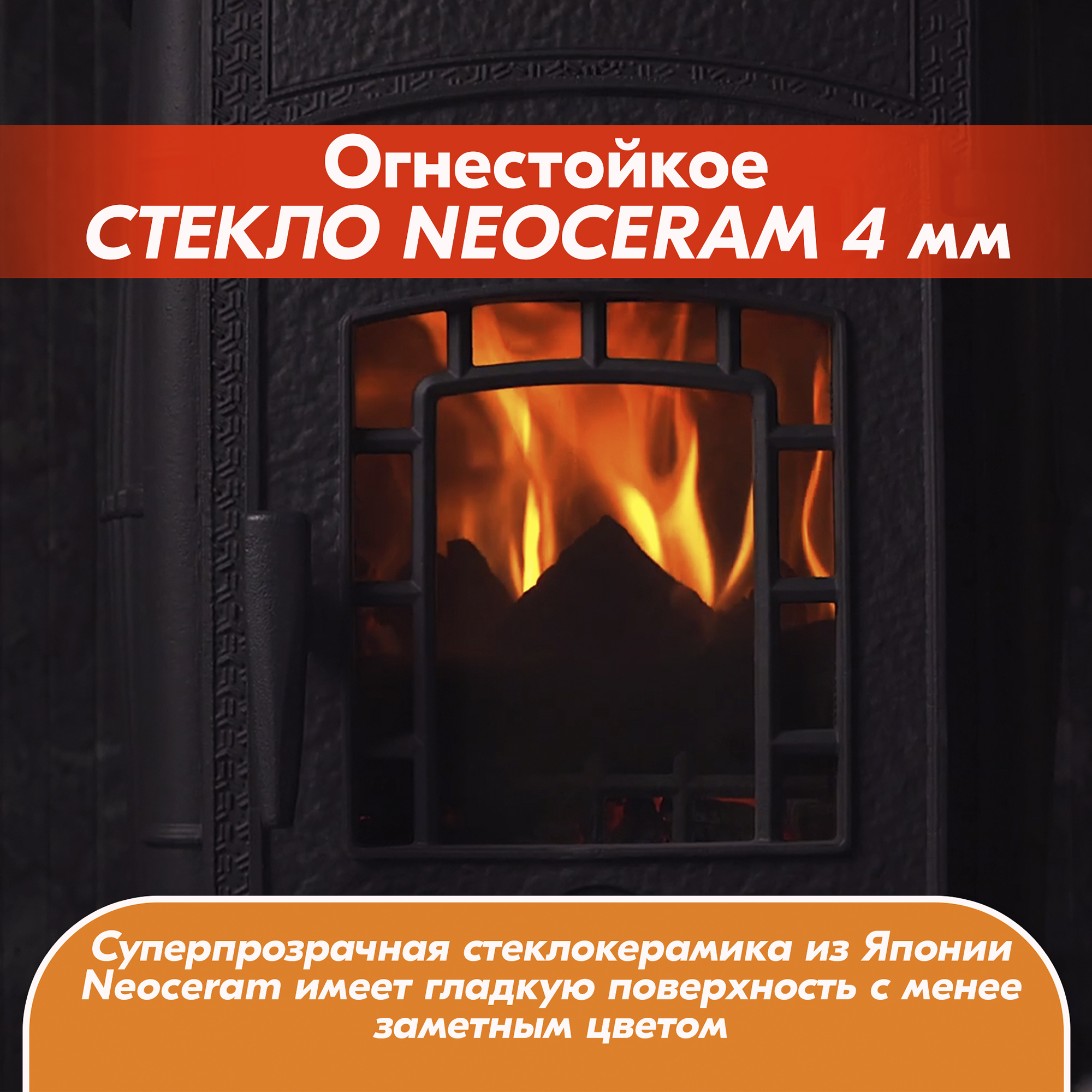 Стекло чугунной печи-камина не коптится благодаря технологии «Чистое стекло».