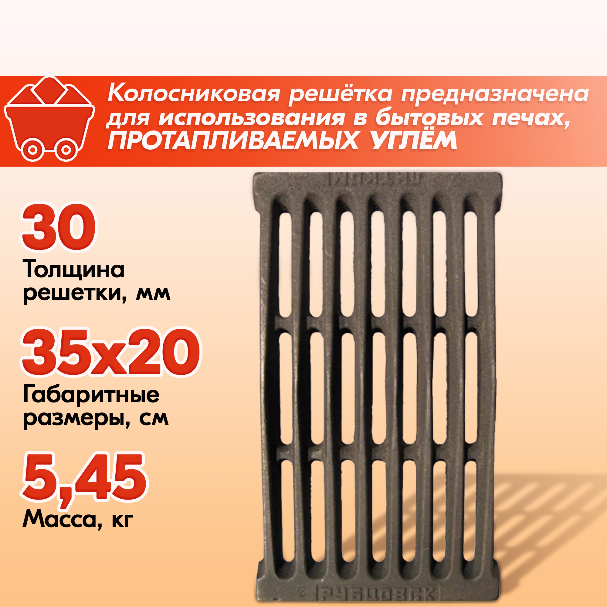 У нас представлены наиболее популярные размеры угольных колосниковых решеток из чугунного литья:
