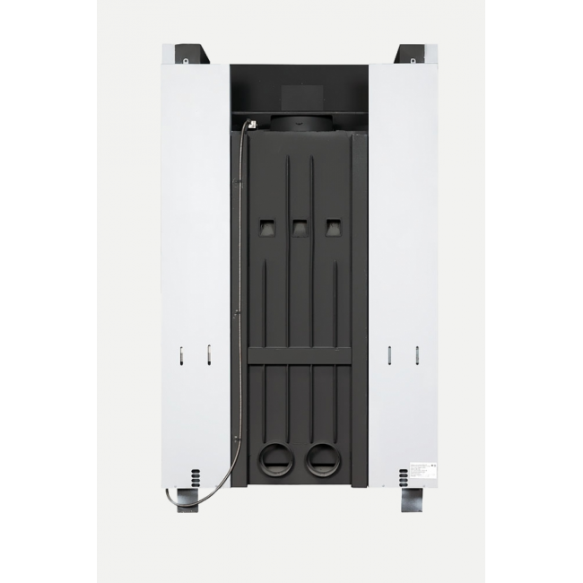 Встроенный кожух и патрубки для системы распределения теплого воздуха в смежные помещения позволяют увеличить площадь обогреваемых помещений.