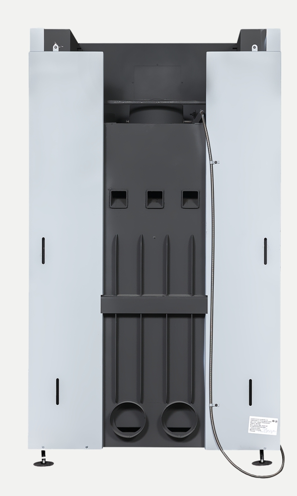Встроенный кожух и патрубки для системы распределения теплого воздуха в смежные помещения позволяют увеличить площадь обогреваемых помещений.