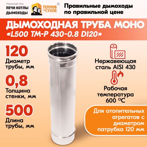 Трубы для дымохода из нержавейки L500 ТМ-Р 430-0.8 D120 для бани, газовый дымоход для котла и печная труба для отопительной печи и камина